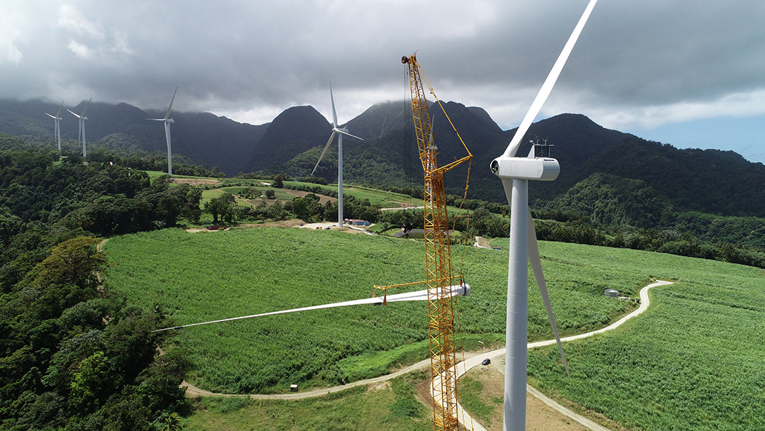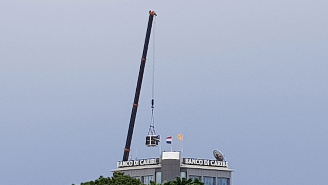 Willemstad - De opbouw van de nieuwe windmolens op de vlakte van San Pedro bij Tera Kòrá loopt volgens plan, ondanks de harde wind van de afgelopen tijd.